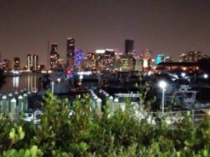 From the peaceful, laid back days in the Keys, we were thrown into the new reality of a sunny, warm, busy Sunday afternoon in Miami. Boat after boat sped by us, almost as if in competition of who could go the fastest and throw the most wake. We were heading for what we had heard was an amazing, protected anchorage. On the way, we see new friends Jim and Gloria. Sadly, they are stopped and waiting for a tow, they picked up a large line wrapped around their prop. Not able to help, we continue on to the anchorage. We pull into No Name Harbor, only to find the anchorage very busy, with boats anchored uncomfortably close. We find a small spot we think will work and drop anchor, knowing most of the boats here are not staying the night, and if we can hang in for a few hours we will have the place to ourselves. Not able to let out much scope, in a surprisingly deep anchorage, we are not able to set the hook. We pull up the anchor and retreat. We find out Chad’s friend Scott is in town to visit his son Matthew (recall Chad and Scott’s great adventure to get our new boat from Bayfield, WI to Frankfort, MI