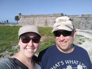 We make a stop at Daytona Beach, hiding out from some bad weather. Not once the spring break hotspot it used to be, the small downtown was struggling to survive. Heading north, the tides are gradually increasing. From a one foot tide at Daytona Beach, we arrive in St. Augustine, where we first encounter a five foot tide. Every six hours, the tide goes from high to low, or low to high. Thankfully most docks are floating, as it is very difficult to tie the boat in properly with a tide that extreme! St. Augustine, the Nation’s Oldest City, is beautiful and rich in history. We make sure to take in a history tour, visit the Fountain of Life, have lunch in a swimming pool, visit a distillery and winery, and take a ghost tour on Friday the 13th! We are also lucky enough to have family to visit in the area. We head out to Penney Farms, where we spend a wonderful afternoon with Chad’s second cousins Kay and Paul. They live in such a cool retirement community, originally founded by J.C. Penney. Kay is an amazing cook, and we have such a feast for lunch! She sends us home loaded up with leftovers and all other kinds of goodies! We enjoyed the much too short visit, learning all about family history and hearing all about Kay and Paul’s adventures.