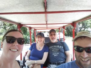 We leave Cumberland Island and head to Jekyll Island. Here, we are meeting Chad’s mom and boyfriend, Mike. It’s been nearly four months since we have seen them, so it is a happy reunion! We are fortunate to be able to spend several days with them, exploring the island. Jekyll Island was such a neat spot, full of history as well. We visit the Jekyll Island Club, now a member of the Historic Hotels of America, but once a private club with members from the world’s wealthiest families such as the Morgans, Rockefellers, and Vanderbilts. We were able to tour some of the private cottages and church, complete with Tiffany stained glass. Chad and I head out early in the morning to move on to St. Simons Island, where Jean and Mike will meet us. We spend the day touring a light house and checking out the fun tourist town. We drive to Brunswick and find a fun evening art fair. Mike found out about an amazing little restaurant, and we ate until we were so stuffed…and the no-see-ums attacked! The next day we had an interesting tour at Fort Frederica, and attempted to get onto the apparently guarded Sea Island. Jean and Mike depart that night, headed back to Michigan.