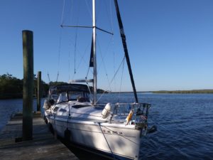 Planning our departure the next day, we use the current to our advantage. Now facing seven foot tides, we have to time our travels according to the tides. We had really hoped to anchor out, but Rilee gave us a scare, and we decided we needed to get to a marina with a car and near a vet (turns out she had a kidney stone, and is doing just fine now). We found an awesome spot at Amelia Island Marina, where we spend some time so we can keep an eye on Rilee. We tour Fernandina Beach and Fort Clinch State Park. Sadly, we find the dock at Fernandina Beach has not recovered from Hurricane Matthew (2016), and in fact is so shallow at low tide that even shallow draft boats are on the bottom. Chad found a really cool restaurant on the beach, complete with swings to sit on at the bar…I love it!!!