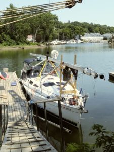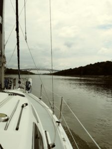 The weather has turned extremely hot and humid, temperatures reaching into the high 90’s. It’s beautiful but stifling traveling on the river. We cruise past West Point, originally a fort overlooking the Hudson River, and now home to the US Military Academy. We watch commuter trains buzz past on the east side of the river, often appearing out of a tunnel dug into the hilly riverside. We make a quick stop in Marlboro for the night, nothing here except a freight train every 30 minutes! In the morning we’re off to Catskill, where we will have our mast taken down one final time. Today’s travel takes us through the beautiful Catskill Mountains. I can’t help but think about Dirty Dancing again…I really need to watch that movie now! After another suffocating day, we arrive to the marina. We wait until dusk to begin work preparing for our mast to come off in the morning. It will be 100 degrees today, and the crane is broken at the yard, so they have to hand crank the crane. We are fortunate enough to locate a pre-assembled stand to hold our mast on top of the boat. With a few modifications, Chad has it fit perfectly. We will carry our mast with us this time, instead of shipping it like we did down the rivers. This section of the journey will be much shorter and calmer. We just have 35 locks to go through, what could go wrong?