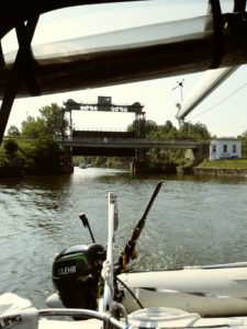 We celebrated my birthday in Newark, and met two other couples bringing their boat back to Michigan. They are preparing to do the Loop in a few years. Our advice, do it now! They invited us over for drinks, and after they sung me happy birthday, we discovered they had relatives from Three Oaks, MI where Chad’s dad grew up. It really is a small world! We move on down the canal to Fairport, where we spend a few days. I even found a tailor to fix my favorite hat! We found Fairport to be another favorite stop, with much to see and do around town. We encounter our first lift bridge on the canal, the first of many more to come. This bridge is an engineering marvel as no two angles on it are the same! We talk with the bridge tender inquiring about her first morning opening, when we find out she already knows the name of our boat from the previous lock.