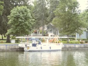 The next day we make our way to Utica, followed by a stop the next day in Sylvan Beach. Sylvan Beach was a cute little vacation town, complete with a beach on Oneida Lake, restaurants, and an amusement park. I question if the park was still open, and actually hope it isn’t considering it looked like a place where old traveling carnivals go to die. As we were tied up to the free wall, go figure Chad starting talking with a local news crew who had just arrived, hoping to interview boaters about boating safety in light of a recent tragedy on a local lake. What first was to be a recorded interview with just Chad, somehow turned into me being on camera as well. What a sad reminder to always be vigilant about boat safety.