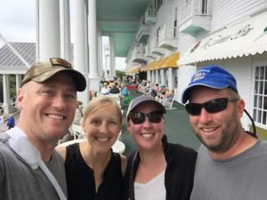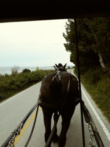 The next day, we head across the Straits of Mackinac to Mackinac Island. It has been years since I have been to the island, though Chad was there just last year as he and Scott brought our boat home from Bayfield, WI where we bought it. This is my first overnight trip, and I’m pretty excited. Something about growing up in Michigan, the island is a special place for many of us. Aside from all of the touristy things to do on the main street, a bike ride around the island is absolutely beautiful. We rented a horse and carriage and got to tour the island on our own (don’t worry, our horse Ace was the slowest guy around!). After realizing the weather would keep us here for a few days, Chad’s sister and brother-in-law took the ferry over to spend the day with us. We had so much fun on the horse and carriage we decided to do it again with them, and we got Ace again! We toured the Grand Hotel and their beautiful historic carriages, still in use today.