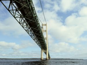 We know the current will be the strongest at the Bluewater Bridge, just before the river meets Lake Huron, so we heed local advice and get as close to the Canadian shore as we can. At first it didn’t seem too bad, but we could see the rapid current on the other side of the river. Then, all of a sudden, it felt like we weren’t making forward motion at all. It seemed the sunbathers on the beach were stopped next to us. I couldn’t watch, and Chad told me later that at our slowest, we were only moving forward at ¾ of a knot at one point. Yikes!