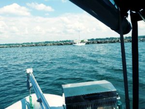 As we entered the harbor at Cleveland, we noticed a sailboat motoring near the rocks. That’s when we noticed a mast from the other side of the rock wall, outside the harbor. Then we heard a mayday call on the radio about a boat on the rocks. We motored up to the other sailboat, and learned they had called mayday because they thought the sailboat outside of the harbor was on the rocks, and they were unable to make contact with anyone on the boat (not exactly a cause for a mayday call in my book, but anyways). They had to get back in for some time constraint, so we said we would motor back out around the harbor rock wall to see if there was someone in distress on the boat, while we attempted to hail the Coast Guard. The Coast Guard responded to our call, and reached the vessel just after we did. We were unable make contact with anyone on the boat either, but the boat was anchored, from the stern, in a very dangerous place. The companionway doors were left open, and the swim ladder was in the water. Something seemed off, but we never did see anyone in the water or on the rocks. The Coast Guard boarded the boat and there was no one aboard. We never did find out what happened to the boat, we think about it often and hope the story turned out okay in the end.