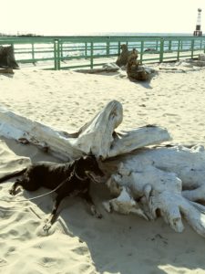 The next day is a much calmer day on the lake. Arriving in Pentwater after the end of tourist season, we find most of the town closed up on this weekday. We head to the beach and enjoy the beautiful weather. It’s been awhile since we had the dinghy down, so we launch it and take a cruise around Pentwater Lake.
