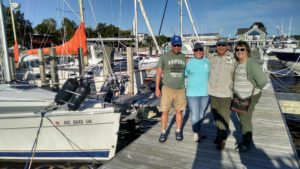 We had an amazing few days catching up with Kristin and Matt. We also did a bit of traveling while they were here. We used one early morning’s tides to get us through the Cape Fear River and Snow’s Cut, and docked at Carolina Beach. Matt and Kristin even got to join us for our trip from Carolina Beach to Wrightsville Beach. While we were with Matt and Kristin, we got the call that all of Rilee’s tests came back fine, so we were very relieved. We had so much fun checking out the aquarium and butterfly garden, Fort Fisher, and of course enjoying some good BBQ and brews! Oh yeah, remind me to tell you something later…;)
